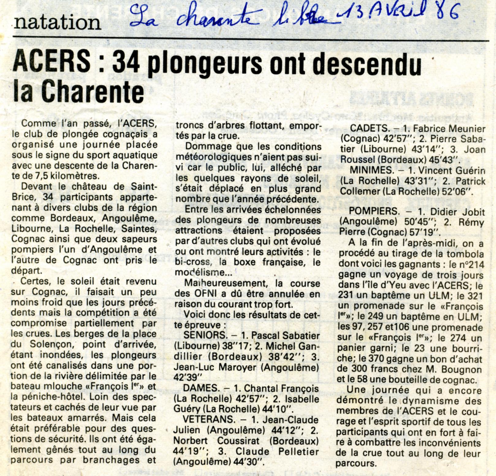 Charente Libre du 13 Avril 1986